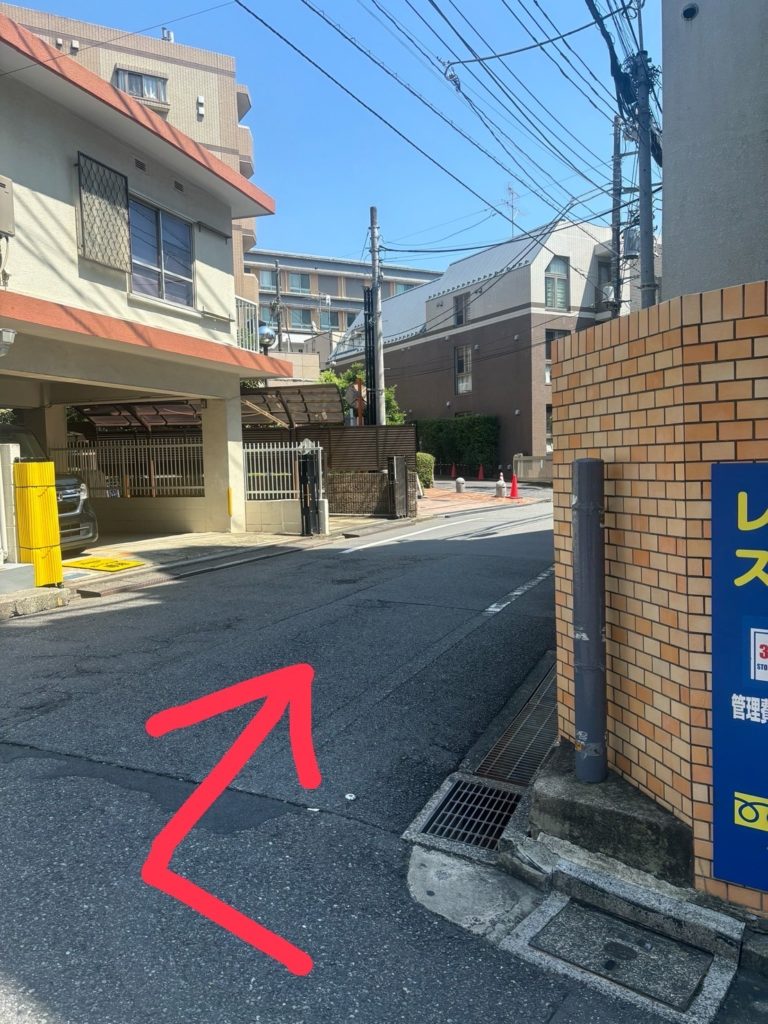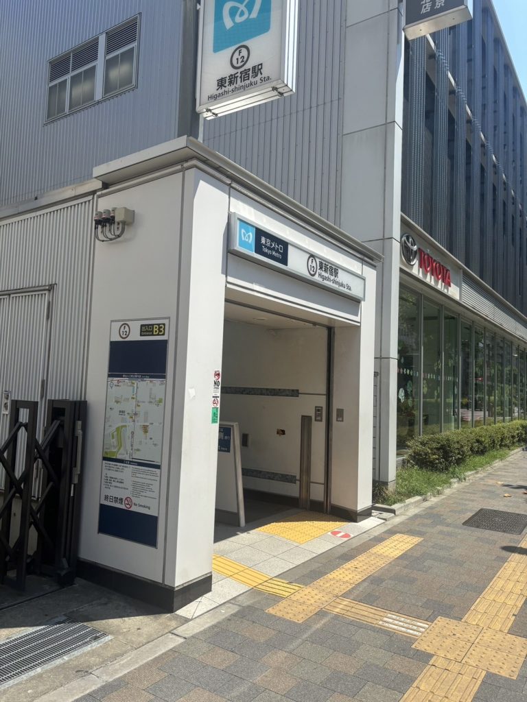 ①東新宿B3出口を出ます。 ②右手にスーパー(サントク)がございますので、 そちら側に向かって直進します。 ③坂を下ってしばらく歩きます。 ④ここで右に曲がります。 ⑤少し歩いて左手の坂を登る途中で、サロンに到着です ⑥サロンです